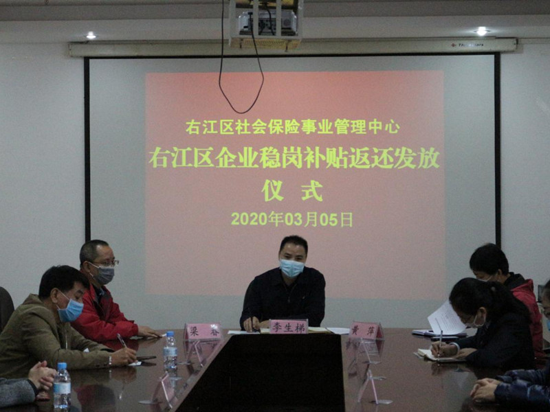 ??? 3月5日,在右江區(qū)社會保險事業(yè)管理中心召開穩(wěn)崗補貼返還工作會議暨企業(yè)穩(wěn)崗補貼返還發(fā)放儀式,我公司作為首批返還企業(yè)代表之一應(yīng)邀參加,會上社保中心主任李生梯對我公司響應(yīng)穩(wěn)崗補貼政策給予高度肯定,期望通過穩(wěn)崗補貼返還為公司的穩(wěn)定復(fù)產(chǎn)助力。截止目前,我公司有8家子公司符合享受失業(yè)保險穩(wěn)崗返還補貼條件,獲得穩(wěn)崗返還補貼3.6萬元,惠及企業(yè)員工約150人。(通訊員:黃 芬)
