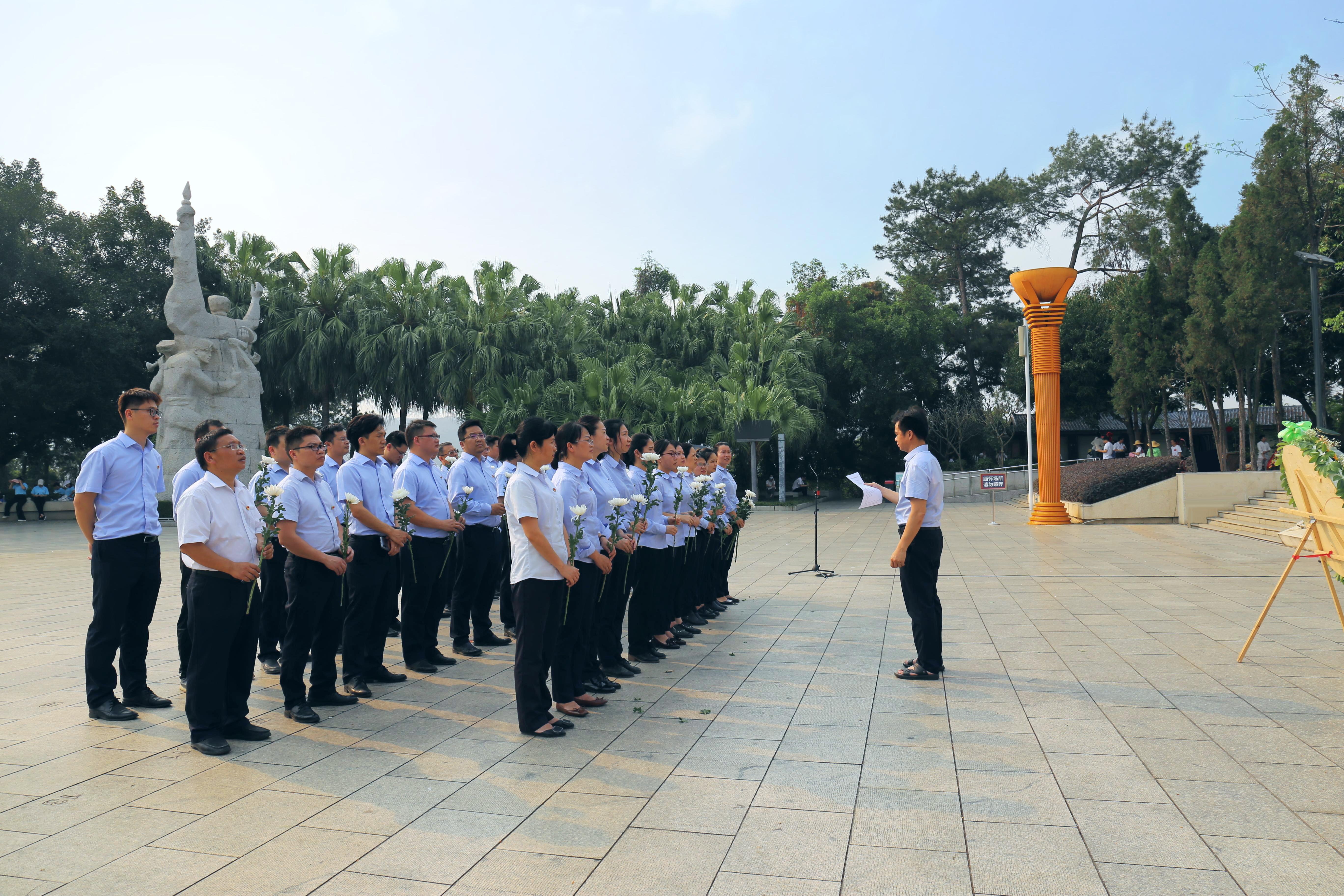 ????????全體黨員肅立默哀,向革命先烈敬獻花圈,莊重鞠躬表達對烈士的深切哀悼和無盡的敬仰之情。在黨支部書記岑文同志的帶領(lǐng)下,大家懷著對先烈無比崇敬的心情,列隊拾階繞碑體一周,并依次上臺為烈士們獻花,表達對革命烈士崇高的敬意和深切的哀思。