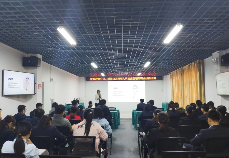 ????????為加強職工隊伍建設,提升專業(yè)技能,培養(yǎng)專業(yè)人才,11月5日,益眾教育公司、益眾后勤公司聯(lián)合開展了健康管理師職業(yè)技能培訓,50余名管理人員參加。