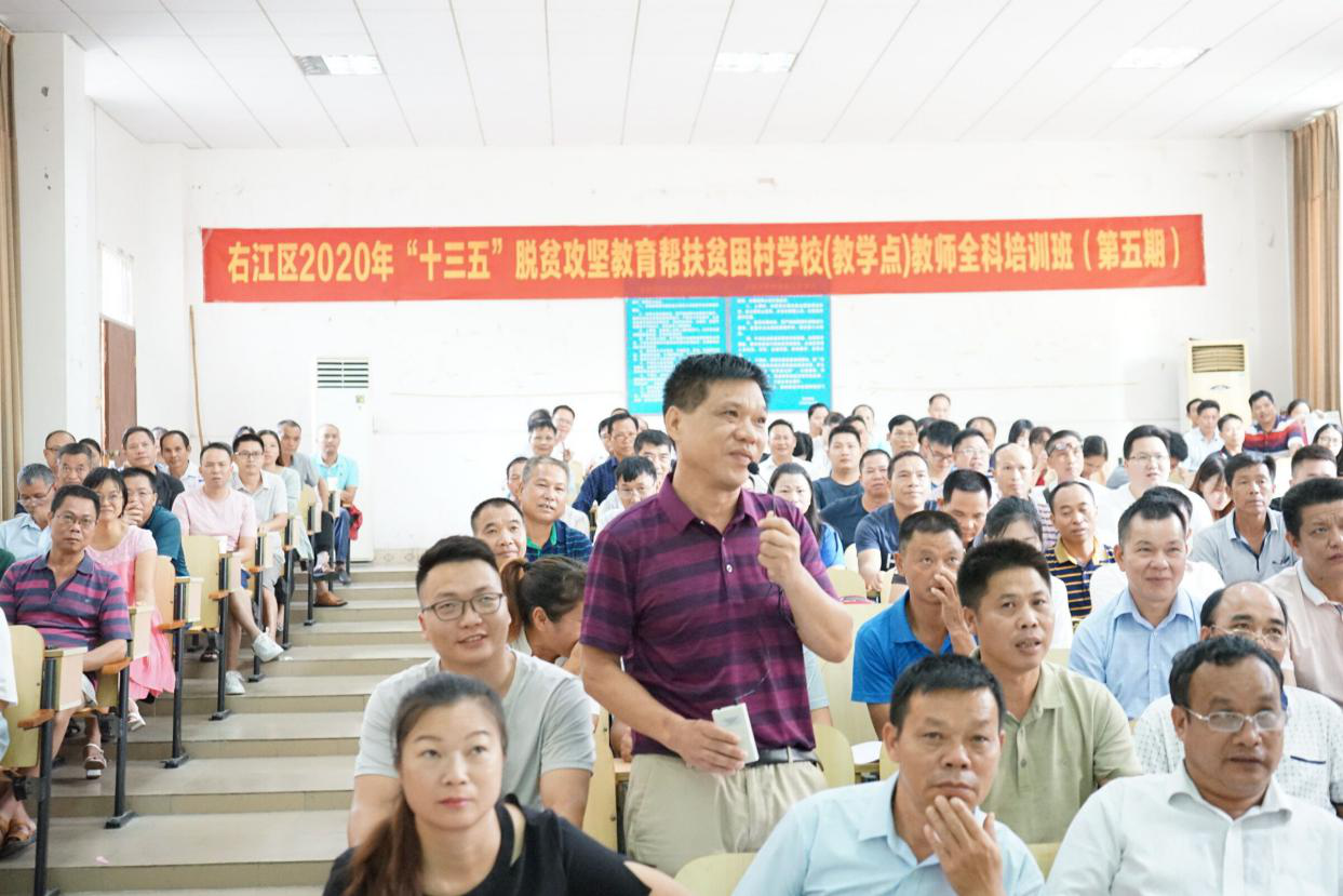 ????????為積極配合百色市右江區(qū)教育局推動右江區(qū)義務教育課程改革,提升教師隊伍的專業(yè)素養(yǎng)和理論水平,優(yōu)化教師隊伍結(jié)構(gòu),推進右江區(qū)義務教育均衡發(fā)展。近日,百色市右江區(qū)教育局主辦,廣西百色益眾教育投資有限公司與百色學院聯(lián)合開展了右江區(qū)2020年小學科學、信息技術(shù)、道德與法制、語文、數(shù)學教師及班主任能力提升培訓,各班培訓期4天,共有來自右江區(qū)各小學相關(guān)科目老師約1700人參加了本期培訓。
