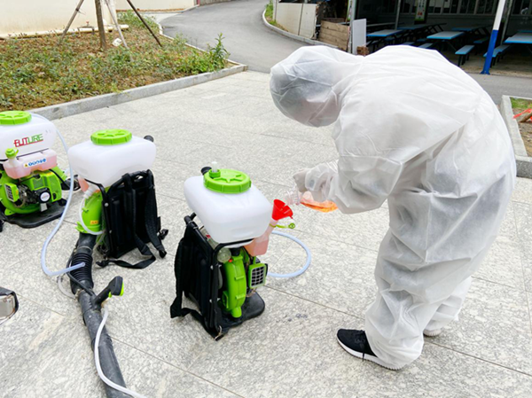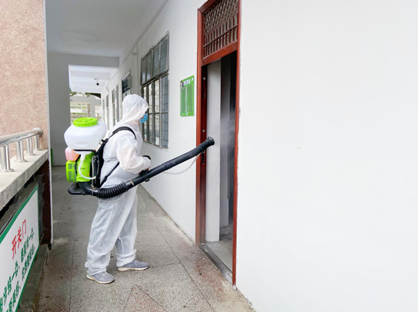 醫(yī)務(wù)人員對(duì)各宿舍進(jìn)行消毒