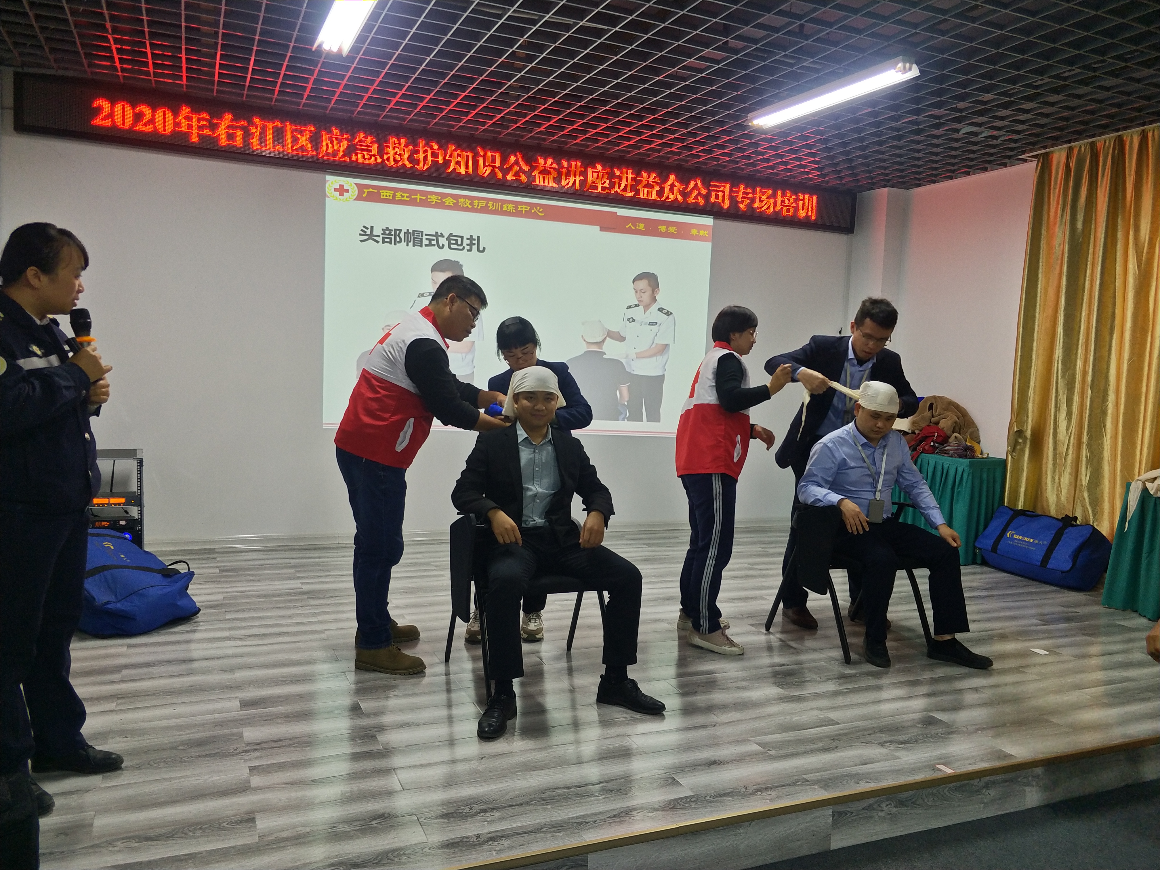 ????????培訓(xùn)由廣西紅十字會(huì)救護(hù)訓(xùn)練中心教務(wù)科長(zhǎng)辛健敏老師主講。在培訓(xùn)中,辛老師介紹了應(yīng)急救護(hù)基本知識(shí)及心肺復(fù)蘇等技能實(shí)踐操作,參訓(xùn)員工們?cè)谂嘤?xùn)人員的指導(dǎo)下認(rèn)真動(dòng)手演練,通過(guò)理論和實(shí)操相結(jié)合方式,掌握基本應(yīng)急救護(hù)知識(shí)技能,并就日常生活中遇到的應(yīng)急救護(hù)步驟進(jìn)行解答。