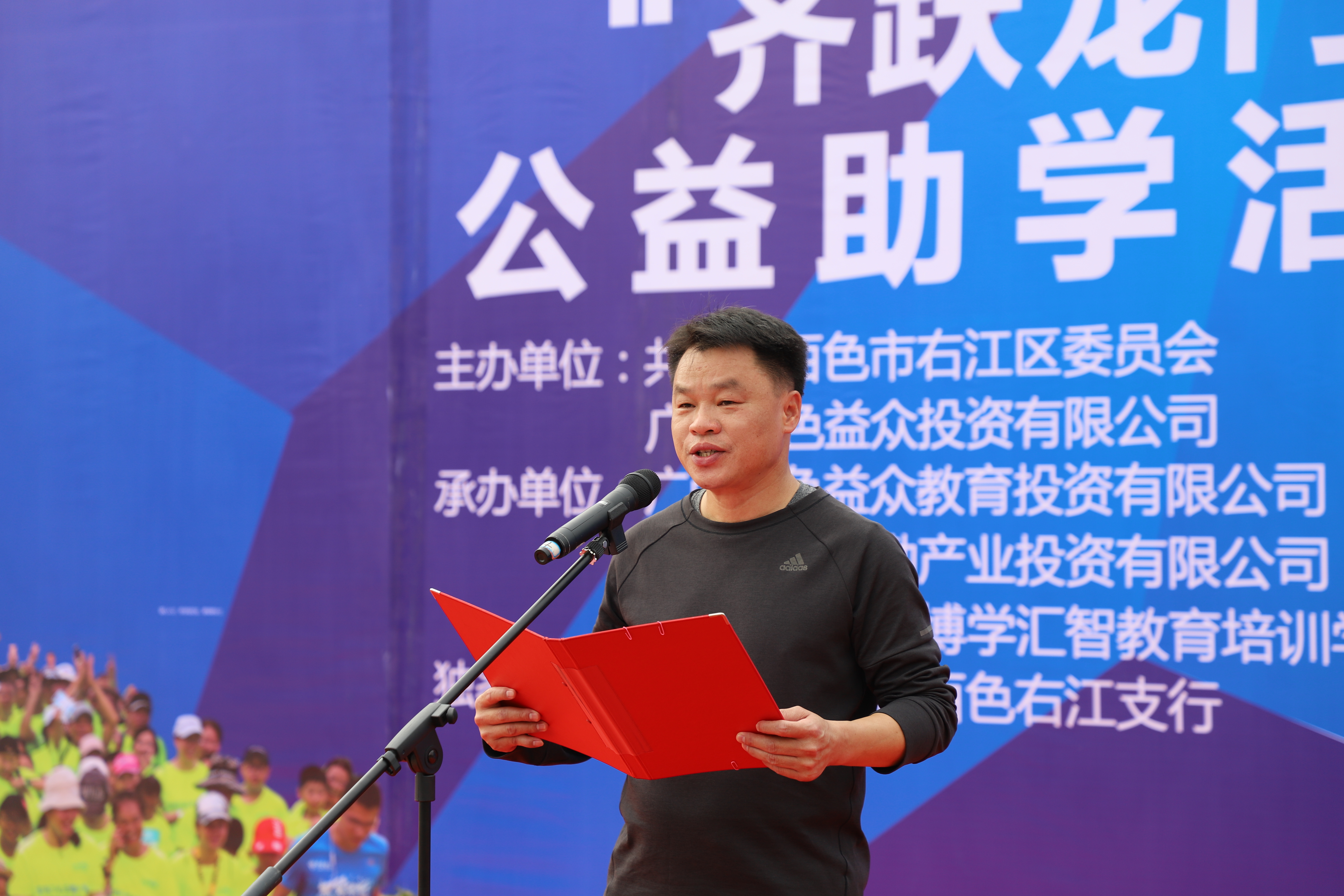 ????????本次公益助學(xué)活動由共青團百色市右江區(qū)委員會、廣西百色益眾投資有限公司聯(lián)合主辦,廣西百色益眾教育投資有限公司、廣西益眾后勤產(chǎn)業(yè)投資有限公司、百色市右江區(qū)博學(xué)匯智教育培訓(xùn)學(xué)校有限公司聯(lián)合承辦。