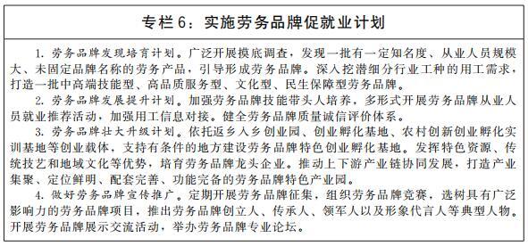 穩(wěn)定和擴(kuò)大農(nóng)村勞動(dòng)力外出就業(yè)規(guī)模。廣泛開展區(qū)域間勞務(wù)協(xié)作,健全勞務(wù)輸入集中區(qū)域與勞務(wù)輸出省份對接協(xié)調(diào)機(jī)制,加強(qiáng)勞動(dòng)力跨區(qū)域精準(zhǔn)對接,發(fā)展勞務(wù)組織和經(jīng)紀(jì)人,有序組織輸出地農(nóng)村勞動(dòng)力外出務(wù)工。培育一批有地域特色、行業(yè)特征、技能特點(diǎn),帶動(dòng)農(nóng)村勞動(dòng)力就業(yè)效果好的勞務(wù)品牌。實(shí)施農(nóng)民工素質(zhì)提升工程,推進(jìn)新生代農(nóng)民工職業(yè)技能提升計(jì)劃。創(chuàng)建一批農(nóng)村勞動(dòng)力轉(zhuǎn)移就業(yè)示范縣。