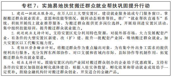穩(wěn)定脫貧人口就業(yè)。健全脫貧人口、農(nóng)村低收入人口就業(yè)幫扶長效機(jī)制,保持脫貧人口就業(yè)領(lǐng)域的扶持政策、資金支持、幫扶力量總體穩(wěn)定。健全有組織勞務(wù)輸出工作機(jī)制,將脫貧人口作為優(yōu)先保障對象,穩(wěn)定外出務(wù)工規(guī)模。支持脫貧地區(qū)大力發(fā)展當(dāng)?shù)貎?yōu)勢特色產(chǎn)業(yè),繼續(xù)發(fā)揮就業(yè)幫扶車間、社區(qū)工廠、衛(wèi)星工廠等就業(yè)載體作用,為脫貧人口創(chuàng)造就地就近就業(yè)機(jī)會。聚焦國家鄉(xiāng)村振興重點(diǎn)幫扶縣、易地扶貧搬遷安置區(qū),積極引進(jìn)適合當(dāng)?shù)厝罕娋蜆I(yè)需求的勞動(dòng)密集型、生態(tài)友好型企業(yè)(項(xiàng)目),增加本地就業(yè)崗位,組織專項(xiàng)就業(yè)服務(wù)活動(dòng)實(shí)施集中幫扶。
