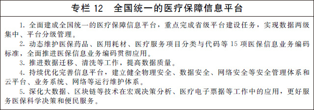 ——建設(shè)智慧醫(yī)保。醫(yī)療保障信息化水平顯著提升,全國(guó)統(tǒng)一的醫(yī)療保障信息平臺(tái)全面建成,“互聯(lián)網(wǎng)+醫(yī)療健康”醫(yī)保服務(wù)不斷完善,醫(yī)保大數(shù)據(jù)和智能監(jiān)控全面應(yīng)用,醫(yī)保電子憑證普遍推廣,就醫(yī)結(jié)算更加便捷。