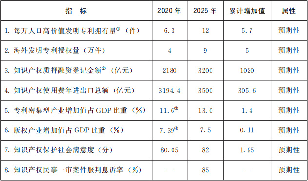 “十四五”時期知識產權發(fā)展主要指標