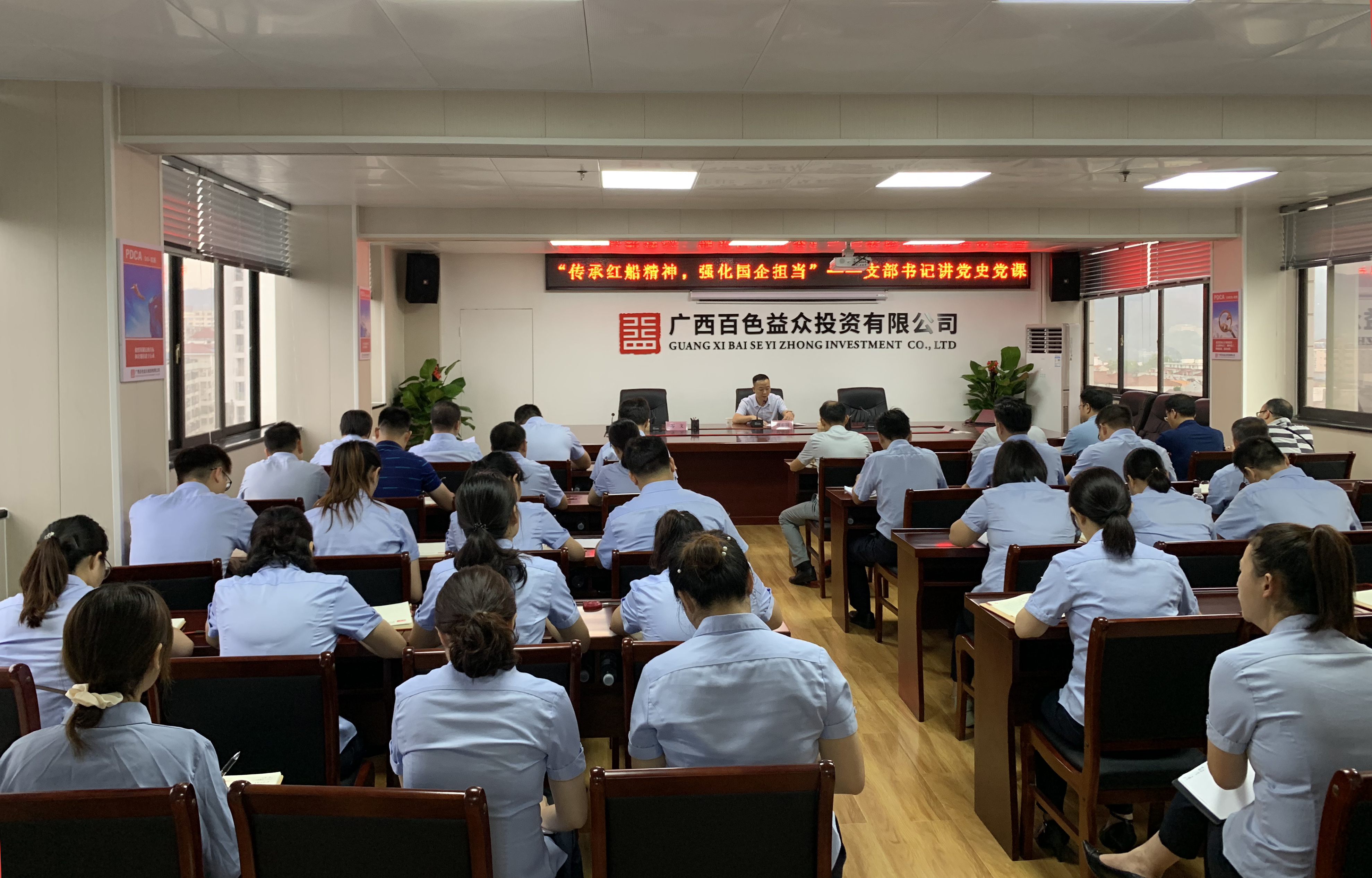 ????????為貫徹落實百色市、右江區(qū)關于開展“書記講黨史”活動的有關工作部署,進一步推動企業(yè)黨史學習教育走深走實,6月11日上午,右江區(qū)國資中心黨支部書記、主任覃春明到益眾公司開展“書記講黨史”活動,益眾公司領導干部、全體黨員、入黨積極分子約60余人參加了活動。