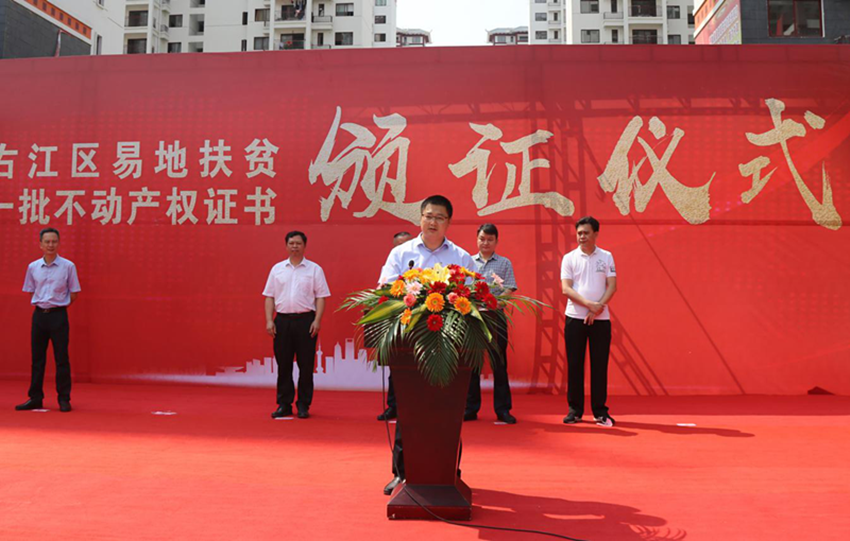 趙家臣在致辭中感謝了長(zhǎng)期以來對(duì)益眾投資公司運(yùn)營(yíng)發(fā)展和“老鄉(xiāng)家園—迎龍易地扶貧搬遷安置小鎮(zhèn)”建設(shè)給予幫助和支持的各級(jí)黨委政府、相關(guān)部門和社會(huì)各界,對(duì)獲得不動(dòng)產(chǎn)權(quán)證書的老鄉(xiāng)們表示祝賀!