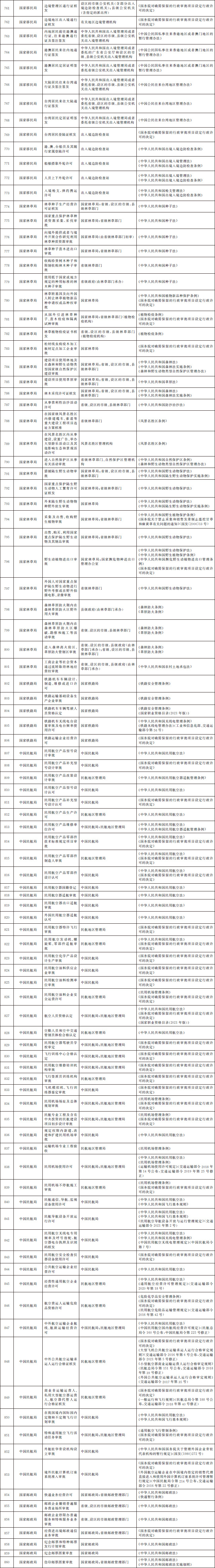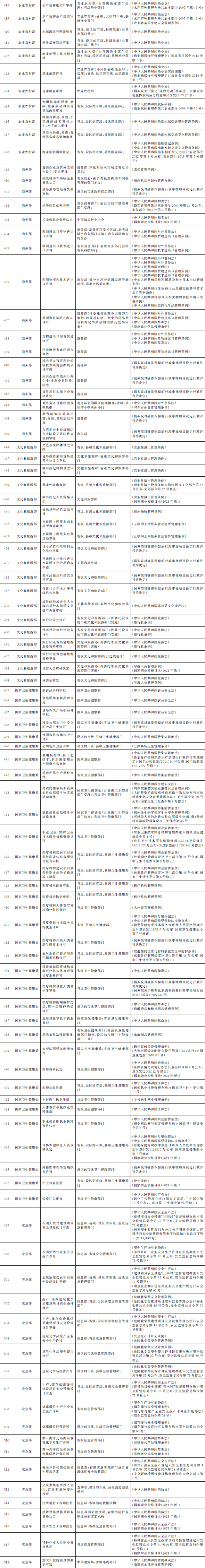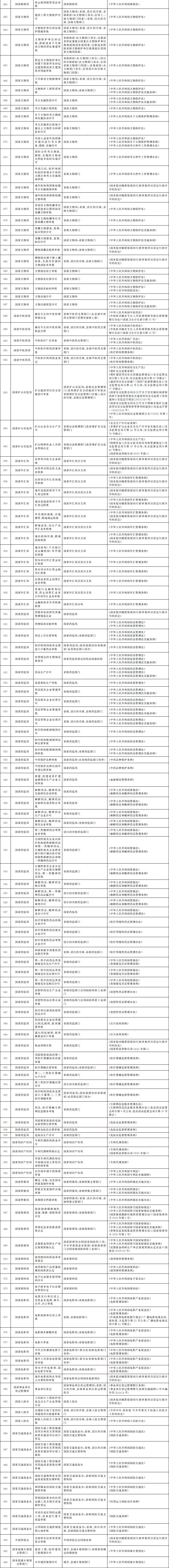 法律、行政法規(guī)、國務(wù)院決定設(shè)定的行政許可事項(xiàng)清單